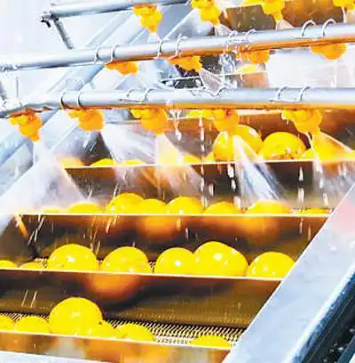 在浙江艾佳果蔬開(kāi)發(fā)有限責(zé)任公司,胡柚正在生產(chǎn)線上進(jìn)行清洗。