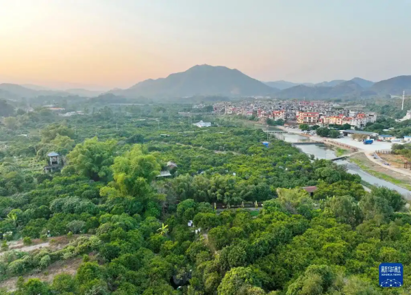 云霄縣下河鄉(xiāng)下河村的楊桃林和周圍的景觀(1月3日攝,無人機全景照片)。