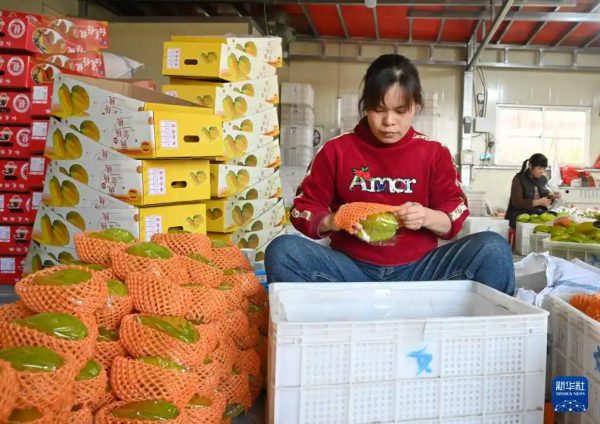 1月3日,下河村村民蔡燦霞在包裝楊桃。
