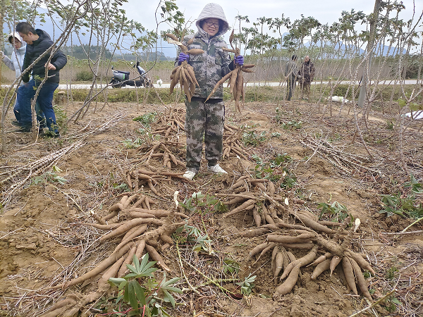 模式創(chuàng)新,凝聚發(fā)展之力。兩江鎮(zhèn)采用“專家+農(nóng)戶”合作模式,引進國家木薯產(chǎn)業(yè)體系專家與農(nóng)戶緊密合作,農(nóng)戶提供土地,專家不定期到場提供技術(shù)支持,共同試驗種植高產(chǎn)新品種。今年,漢安村合作片區(qū)合作模式下的木薯種植基地面積達到了500畝,帶動周邊超100戶農(nóng)戶參與,預(yù)計2025年種植面積將達3000畝以上。合作模式不僅突破了農(nóng)戶種植技術(shù)的難關(guān),也搭建起銷售的橋梁。新模式下,用新品種、新技術(shù)種植的木薯一上市便被搶購一空,收購價格比傳統(tǒng)種植模式下的木薯高出30%,帶動廣大農(nóng)戶增收致富。