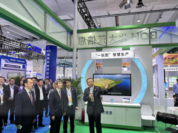 農(nóng)業(yè)農(nóng)村部副部長(zhǎng)江文勝在中國(guó)農(nóng)墾展區(qū)聽取中國(guó)農(nóng)墾用地“一張圖”介紹
