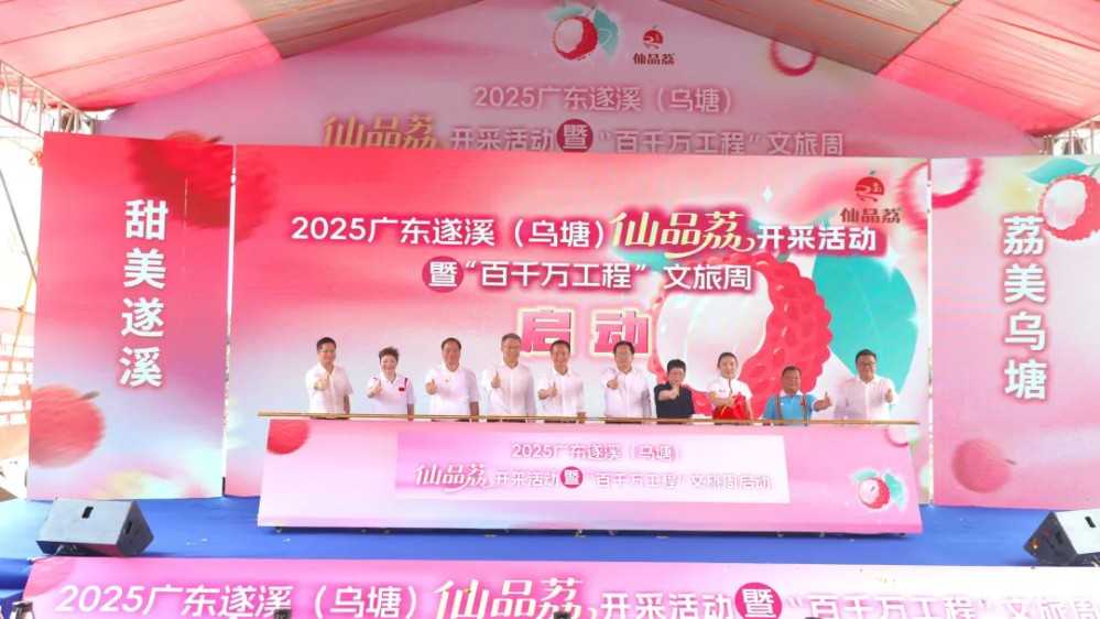 ▲廣東遂溪(烏塘)仙品荔開采活動(dòng)暨“百千萬工程”文旅周啟動(dòng),領(lǐng)跑廣東荔枝銷售“第一棒”。