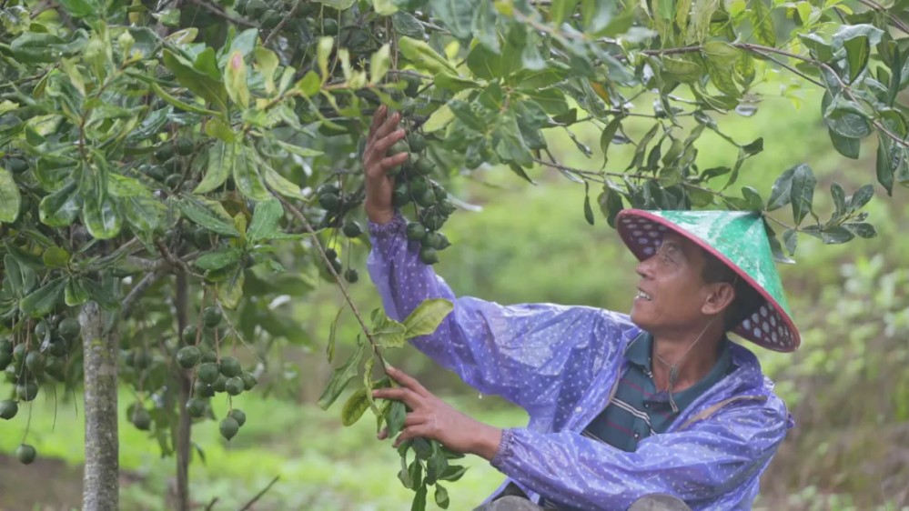連綿山野間,沉甸甸的堅(jiān)果綴滿枝頭,舉目皆是層層疊疊的綠意和一張張果農(nóng)的笑臉。